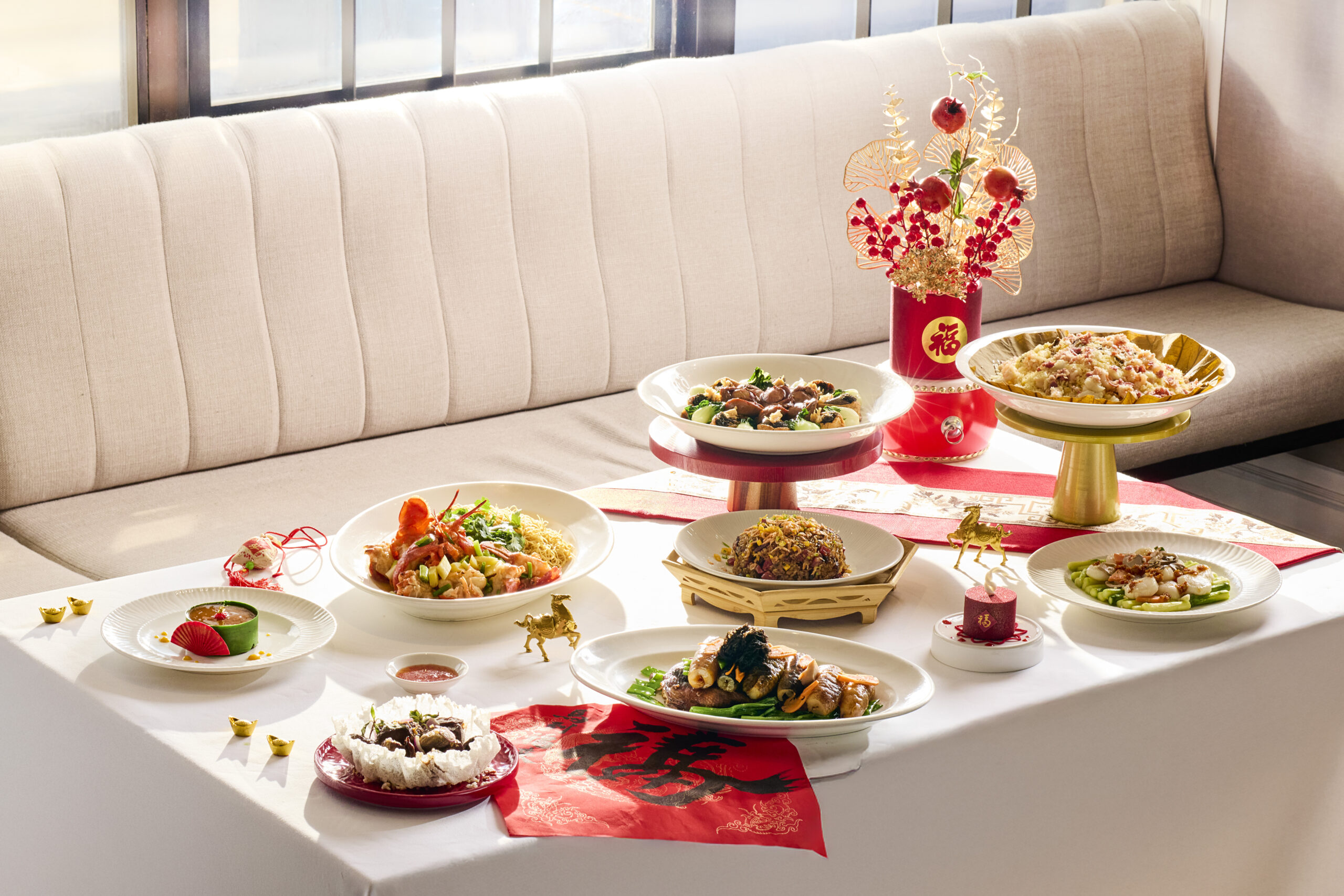 Savor auspicious favorites such as Prosperity Smoked Salmon Yu Sheng, Braised Seafood Maw Soup, Eight-head Abalone with Golden Egg Tofu, Hong Kong–style Steamed Soon Hock Fish, classic Pan-fried Nian Gao, and more.