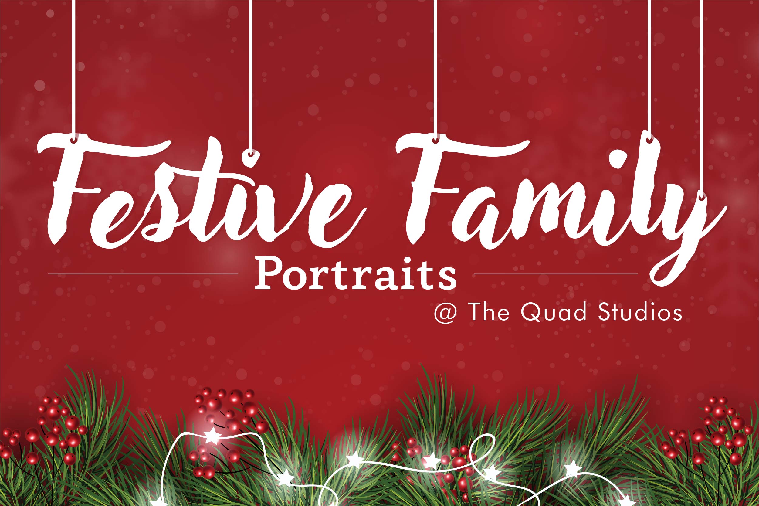 Sign up for a studio family photography session complete with a Merry & Bright-themed set.
