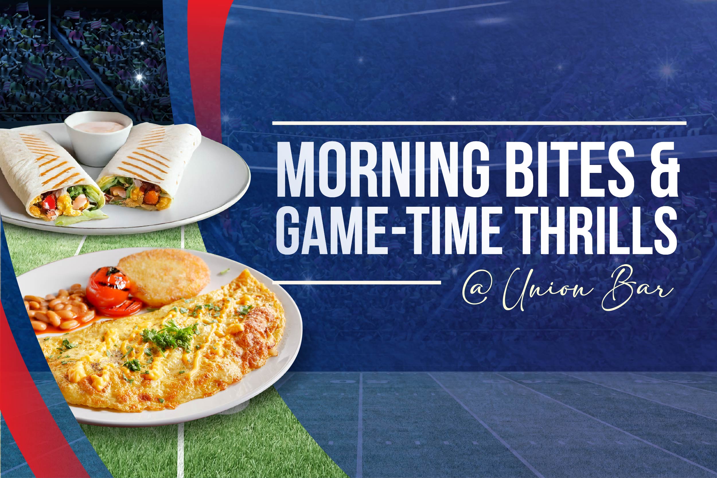Enjoy a hearty breakfast plate as you cheer for your favorite team on the big screen at Union Bar.